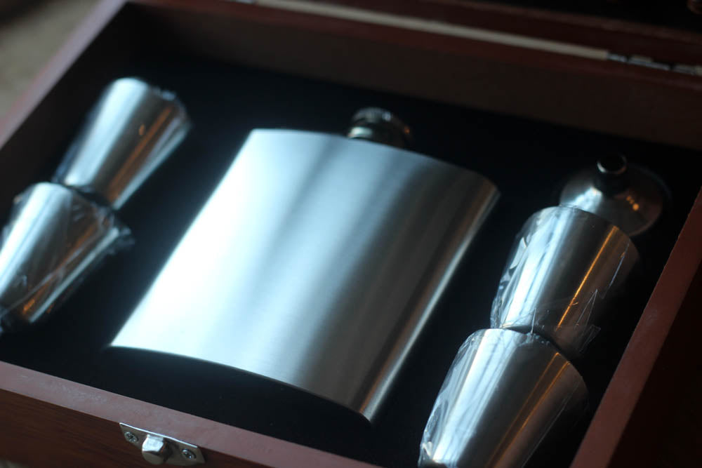 Travel Chess Set with personalised Hipflask and tumblers
