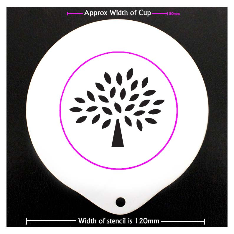 They are much larger than most stencils so that you don't make a mess all over the work top. They measure 120mm across and the pattern in the middle will fit an 80mm cup (which is pretty much the standard size coffee cup).